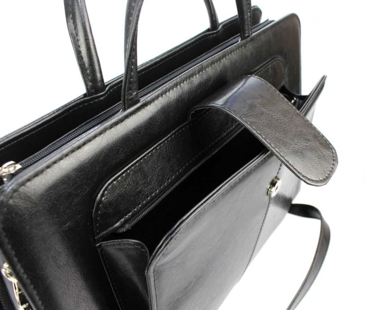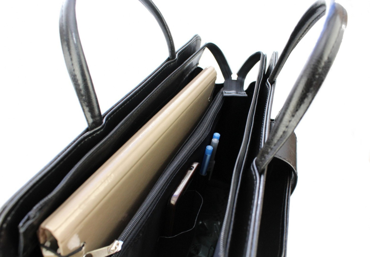 Elegancka aktówka wykonana ze skóry ekologicznej.