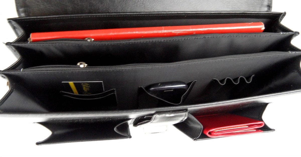 Aktówka posiada trzy szerokie komory, w jednej z przegród umiejscowiony jest schowek zapinany na suwak.