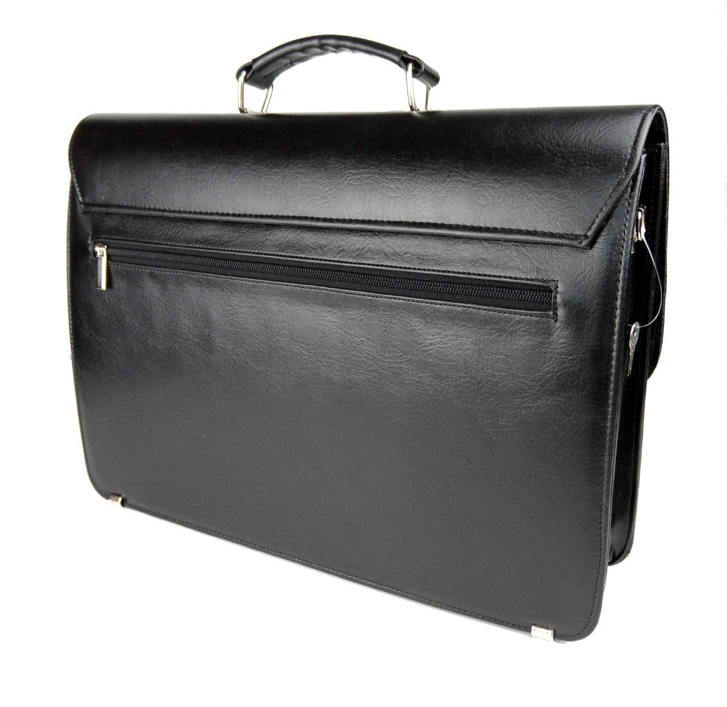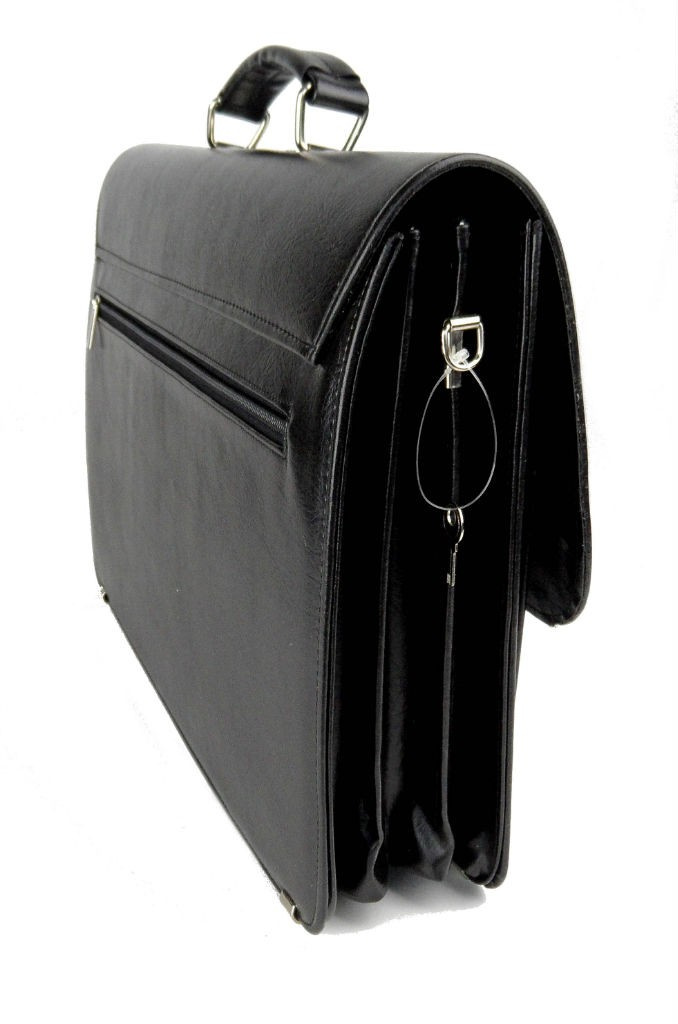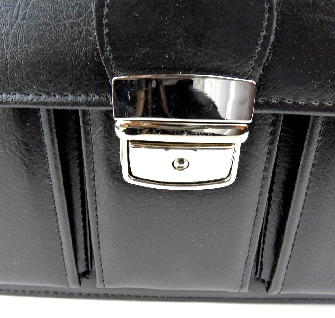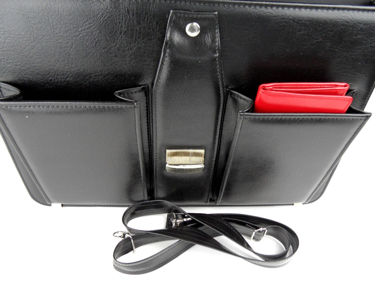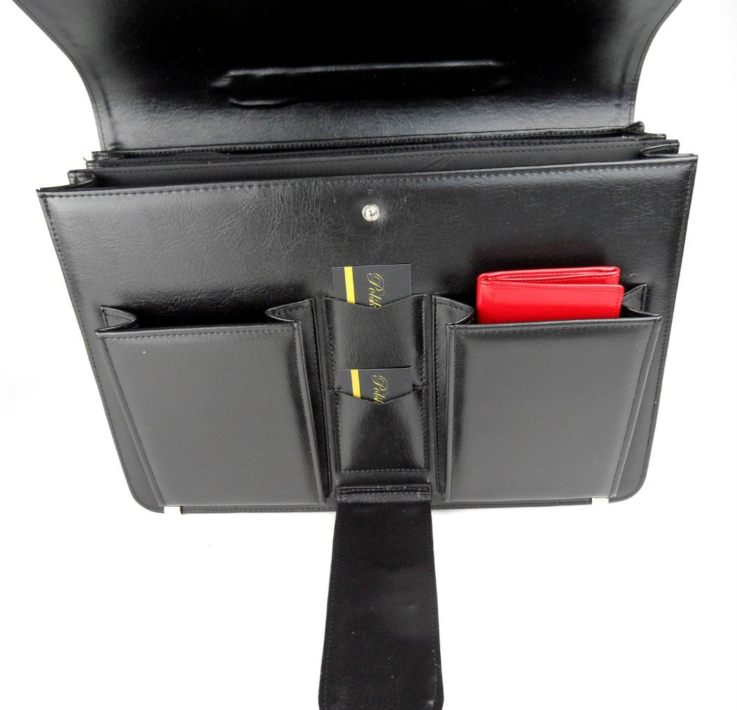 Elegancka aktówka wykonana ze skóry ekologicznej dostępna w dwóch kolorach: czarnym i brązowym. Posiada liczne przegrody i schowki. Wyposażona jest w długi pasek na ramię.