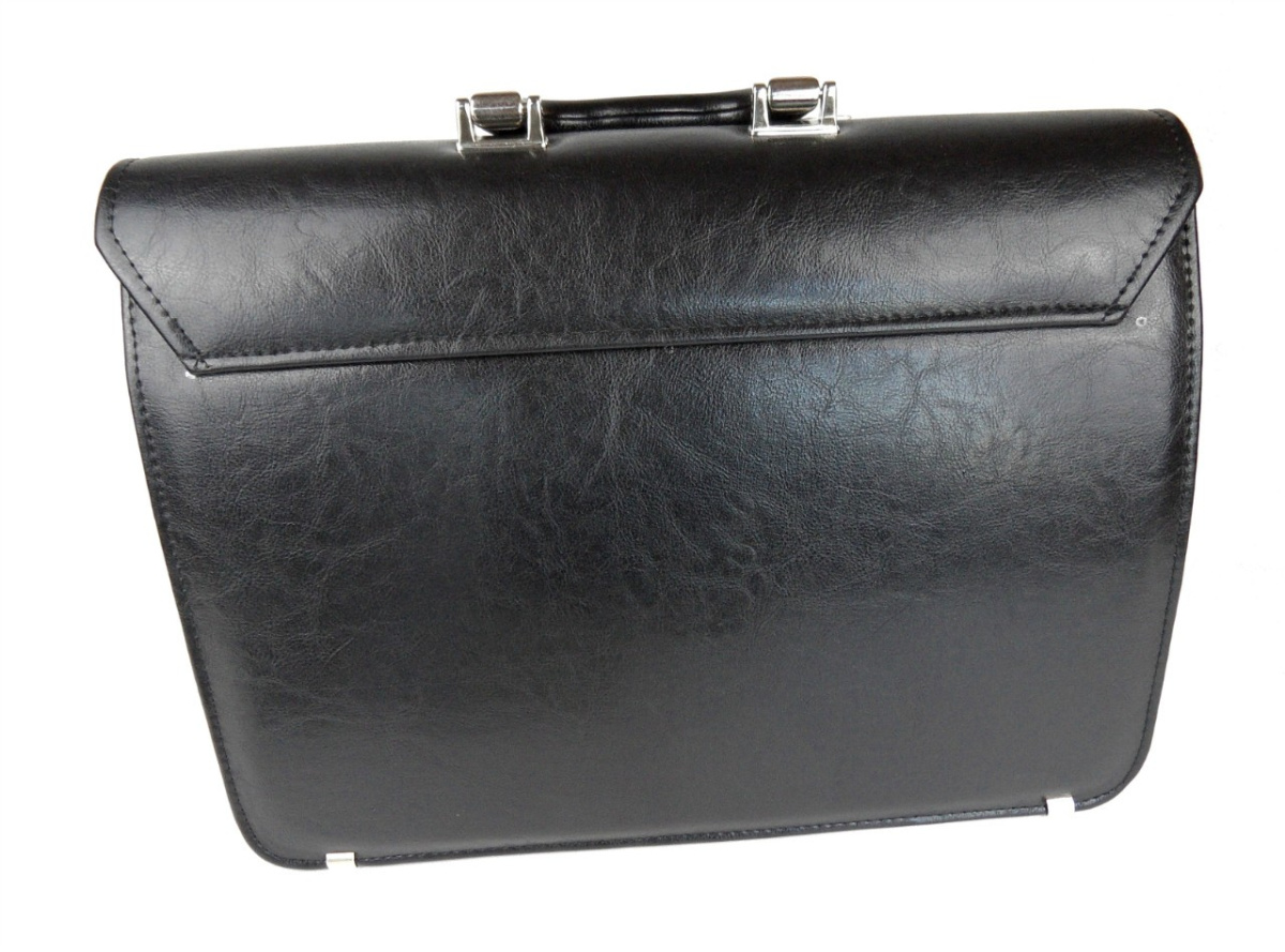 Elegancka aktówka wykonana ze skóry ekologicznej dostępna w kolorze czarnym. Posiada liczne przegrody i schowki. Wyposażona jest w długi pasek na ramię.