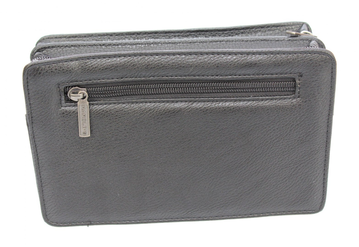 Męska usztywniana saszetka firmy HAROLD'S wykonana w całości ze skóry włoskiej (skóra ekologiczna ) z wygodnym uchwytem. Średni model, wyposażony w dwie duże komory oraz kilka dodatkowych schowków.