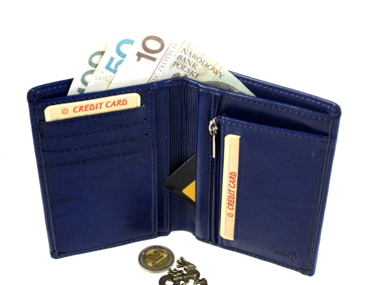 - pionowa kieszeń na bilon zasuwana na suwak z dodatkowym poszerzeniem