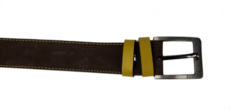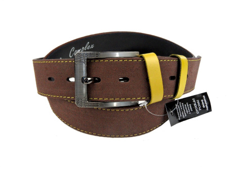 Pasek Brązowy z Miodową Nitką COMPLEX (PL) Skóra Naturalna Licowa Zamsz 40 mm