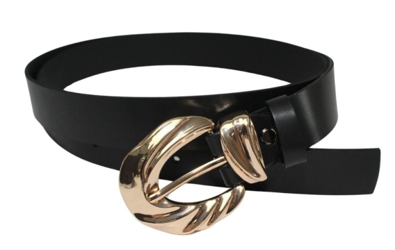 Pasek Damski Skórzany Arucce (PL) Skóra Licowa EXTRA 30 mm CZARNY Złota Pleciona Klamra