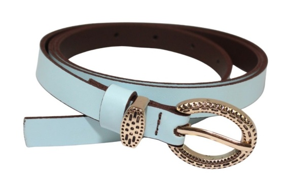 Pasek Damski Skórzany Gładki Arucce (PL) 15 mm Wąski Złota klamra Metalowa Szlufka BŁĘKITNY