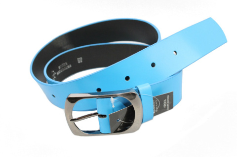 Pasek Damski Skórzany Gładki COMPLEX (PL) 40 mm BŁĘKITNY Szeroki