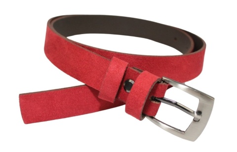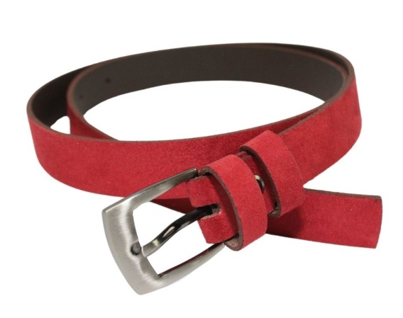 • Pasek Damski Skórzany MASSIMO (PL) Zamszowy 25 mm BORDOWY SREBRNA KLAMRA Wąski