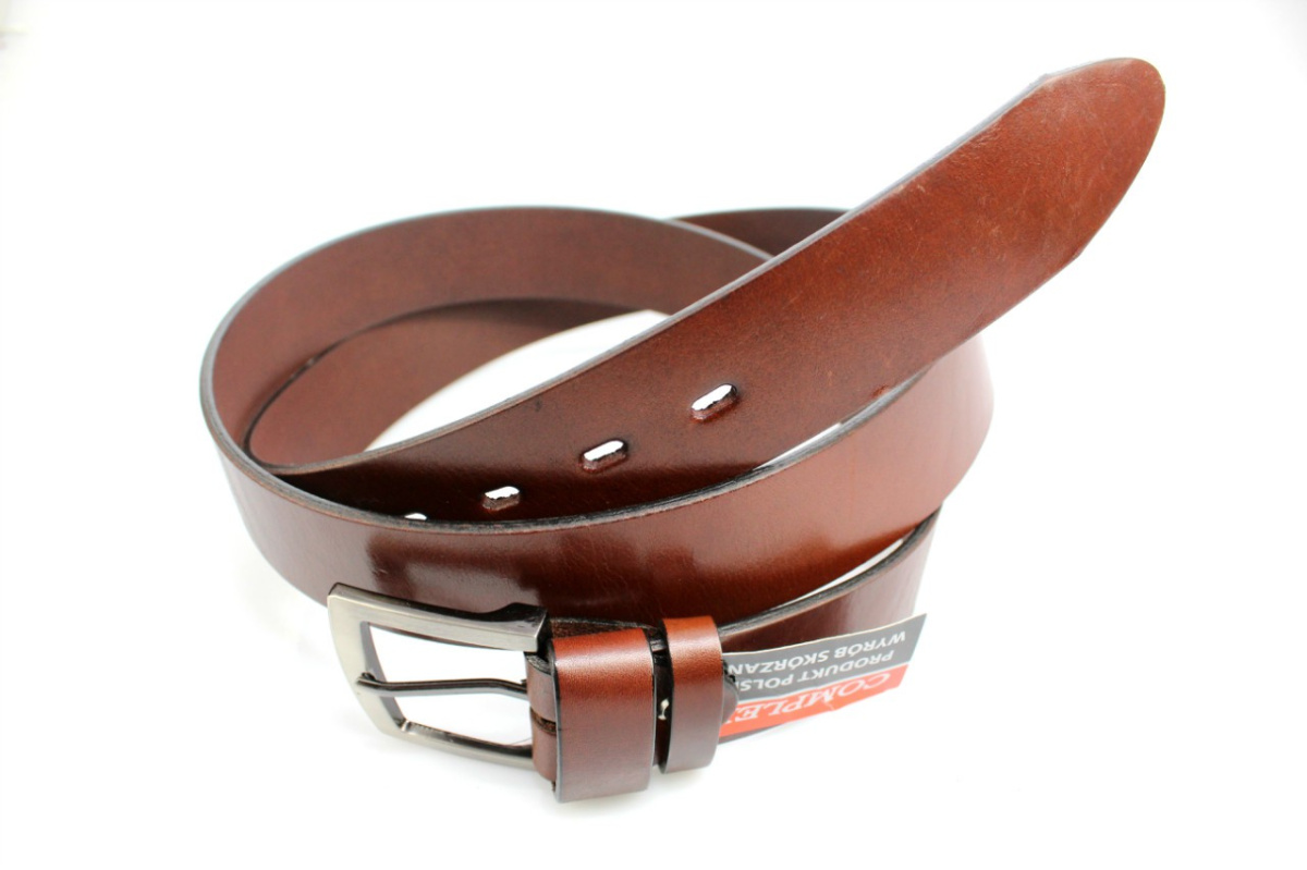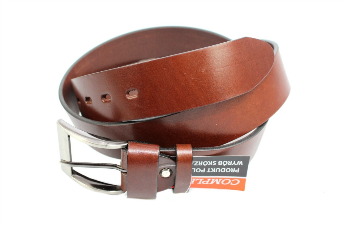Pasek Męski Skórzany COMPLEX (PL) "GŁADKI" Skóra Licowa EXTRA 40 mm KASZTAN