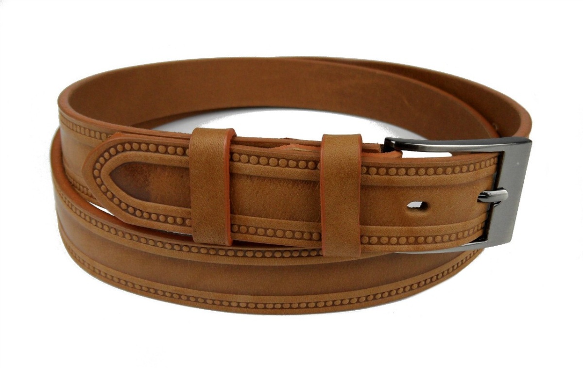 Pasek Męski Skórzany COMPLEX (PL) "GROSZKI" Skóra Licowa EXTRA 30 mm TOFFI / SUROWA SKÓRA