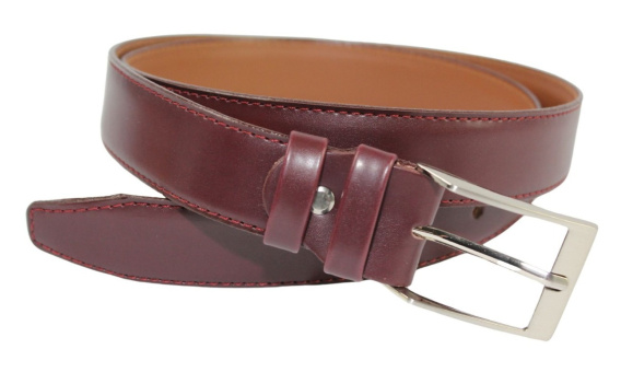 Pasek Męski Skórzany GRETOS (PL) BORDOWY Szyty Cienką Nitką Skóra Licowa 35 mm