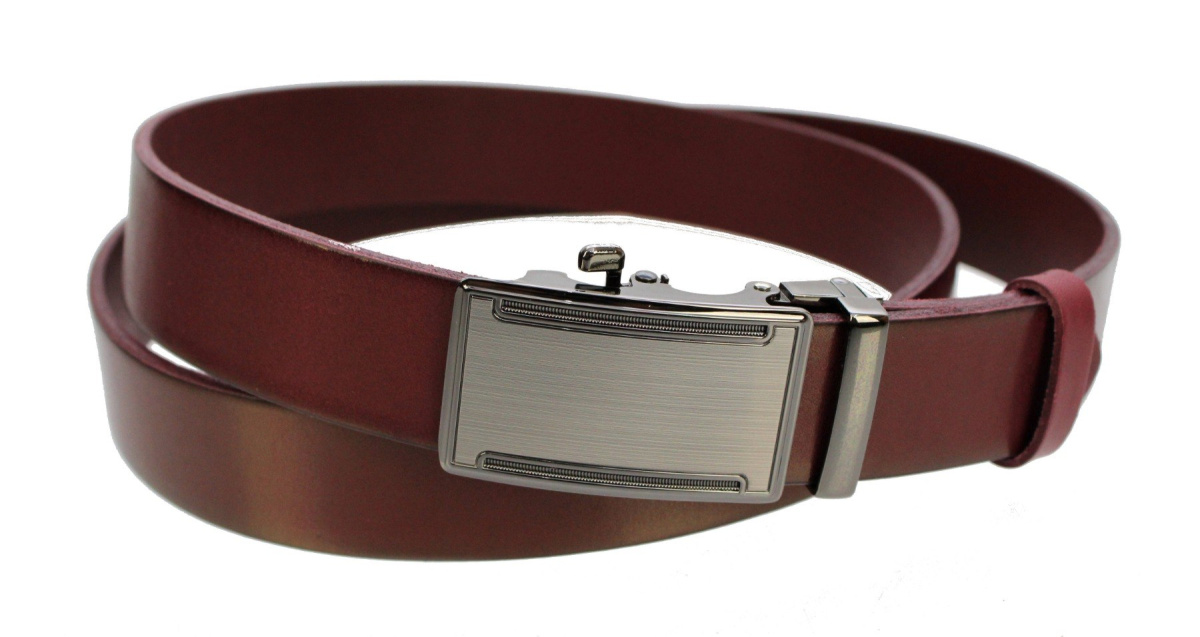 Pasek Męski Skórzany MASSIMO (PL) Skóra Licowa EXTRA 35 mm BORDOWY Gładki Klamra Samozaciskowa SREBRNA 31