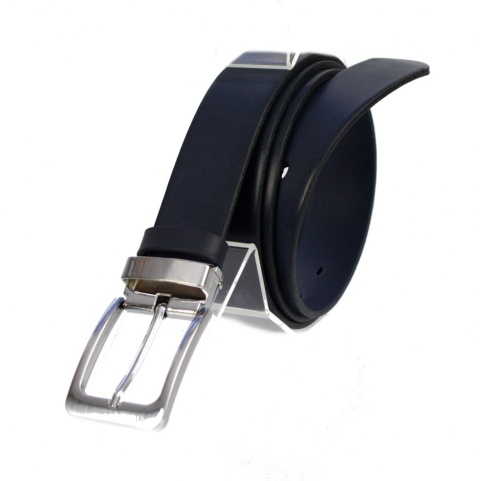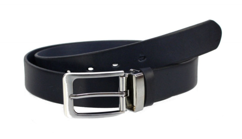 Pasek Męski Skórzany MASSIMO (PL) Skóra Licowa EXTRA 35 mm GRANATOWY Gładki Klamra Nowoczesna