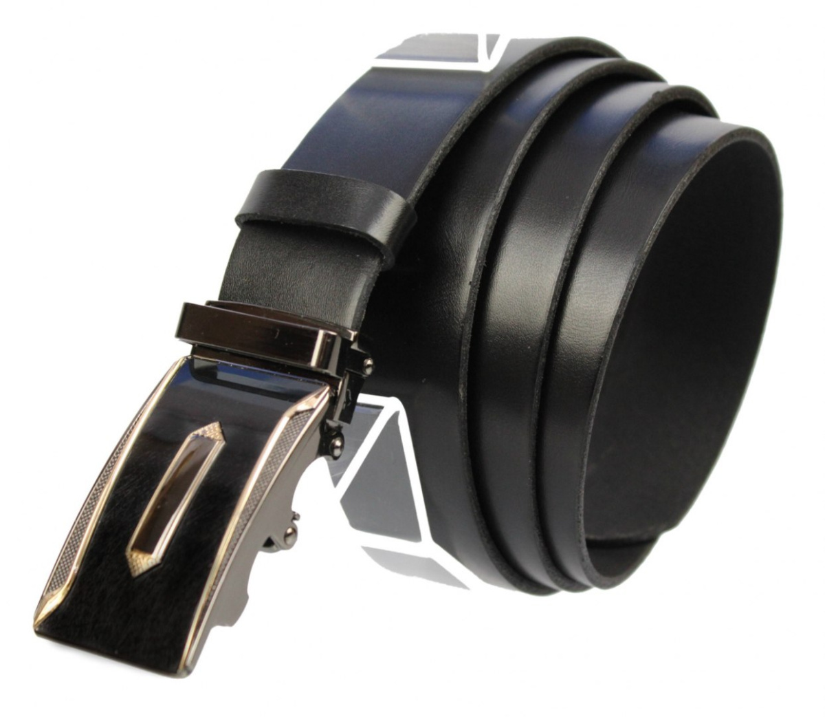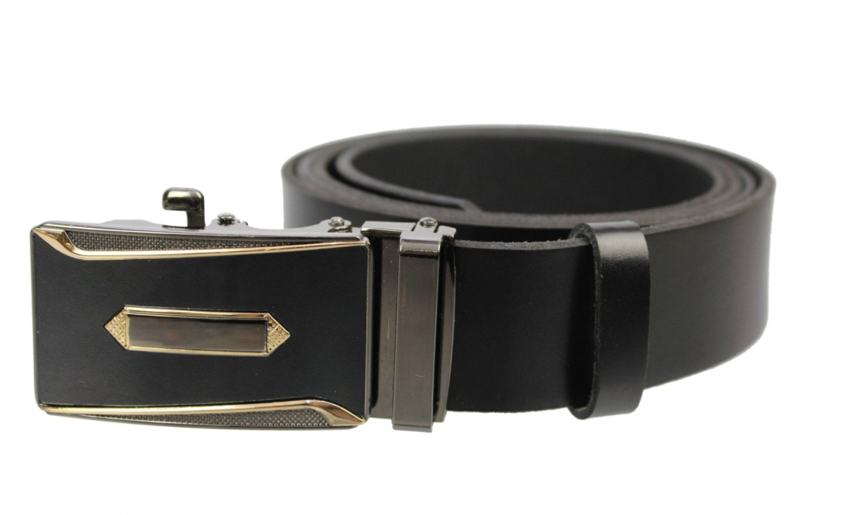 Pasek Męski Skórzany MASSIMO (PL) Skóra Licowa EXTRA 35 mm CZARNY Gładki Klamra Samozaciskowa ZŁOTA 1