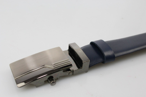 Pasek Męski Skórzany PAS-MAX (PL) Gładki Zaokrąglony Z Pełną Klamrą Automat Skóra Licowa 30 mm GRANATOWY Klamra Srebrna 39