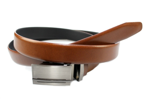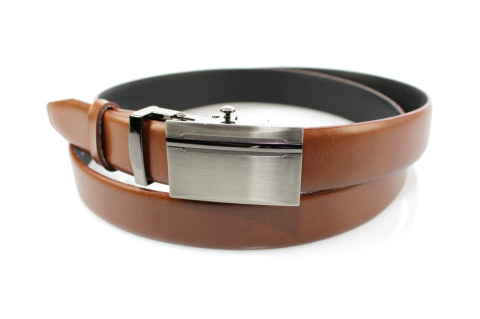 Pasek Męski Skórzany PAS-MAX (PL) Gładki Zaokrąglony Z Pełną Klamrą Automat Skóra Licowa 30 mm Jasny Brąz Klamra Srebrna 33