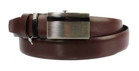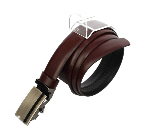 Pasek Męski Skórzany PAS-MAX (PL) Gładki z Pełną Klamrą Automat Ząbki "SREBRNA 28" Skóra Licowa 30 mm BRĄZOWY