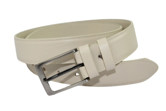 Pasek Męski Skórzany PAS-MAX (PL) "IMITACJA SZYCIA CIENKĄ NITKĄ" Skóra Licowa 35 mm KREMOWY