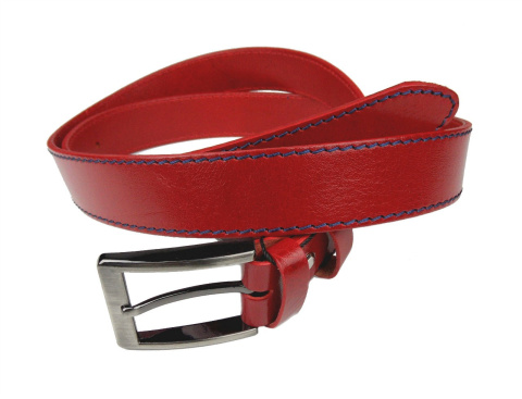 Pasek Męski Skórzany PAS-MAX (PL) Skóra Licowa EXTRA 35 mm Czerwony Z Błękitną Nitką