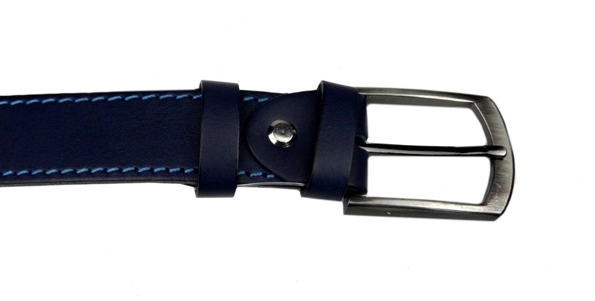 Pasek Męski Skórzany PAS-MAX (PL) Skóra Licowa EXTRA 35 mm Niebieski Z Błękitną Nitką