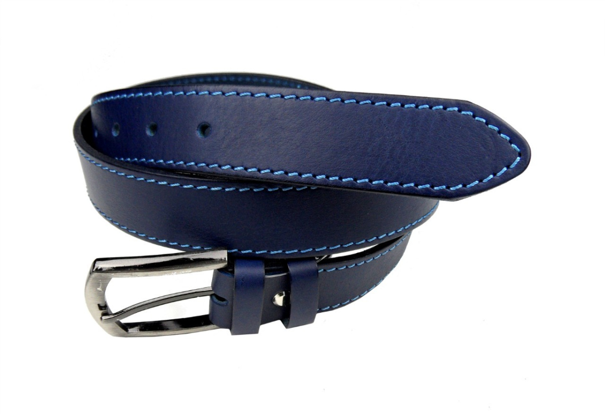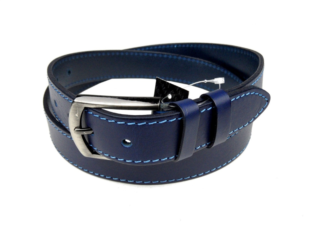 • Pasek Męski Skórzany PAS-MAX (PL) Skóra Licowa EXTRA 35 mm Niebieski Z Błękitną Nitką