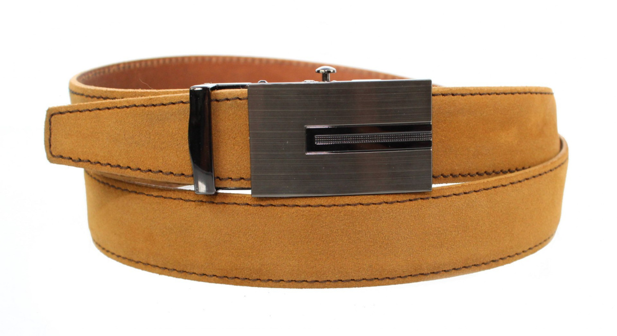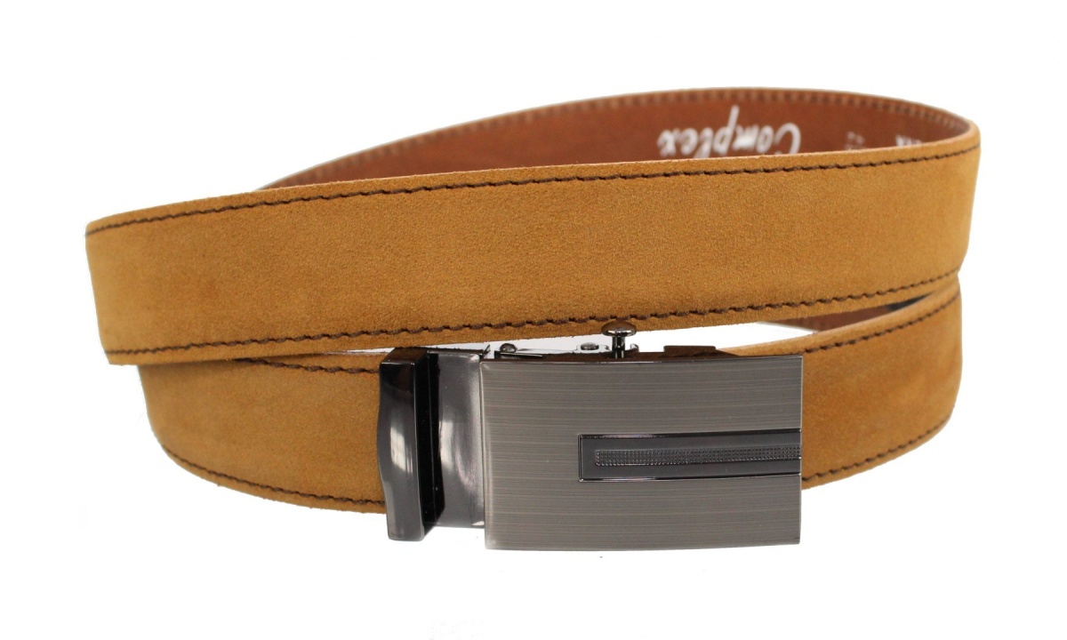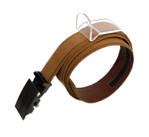 Pasek Męski Skórzany PAS-MAX (PL) ZAMSZOWY z Pełną Klamrą Automat Ząbki "SREBRNA 30" Skóra ZAMSZOWA 30 mm TOFFI
