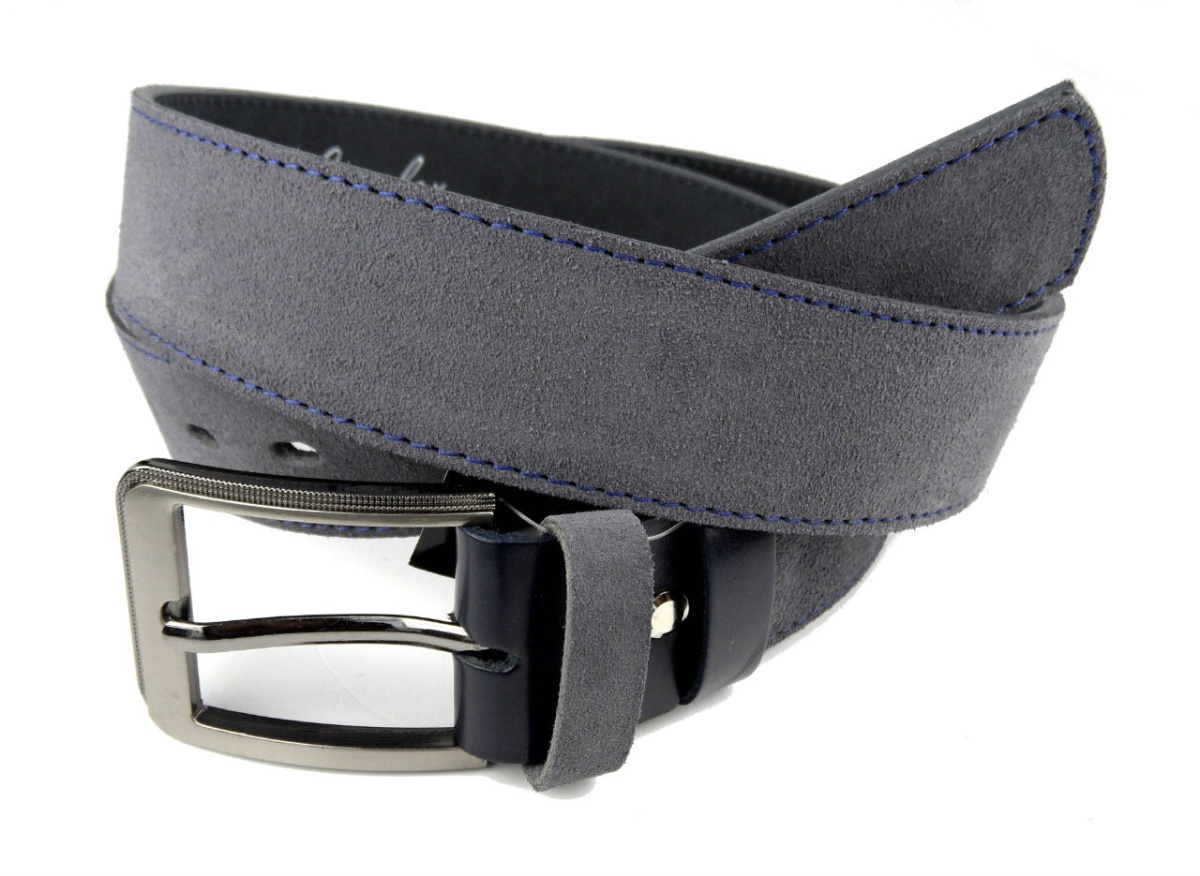 Pasek Popielaty Z Granatową Nitką COMPLEX (PL) Skóra Naturalna Licowa Zamsz 40 mm