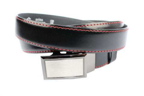 Pasek Skórzany COMPLEX (PL) Gładki Zaokrąglony Z Pełną Klamrą Automat Skóra Licowa 30 mm CZARNY SZYTY CZERWONĄ NITKĄ Klamra ''SREBRNA 12''