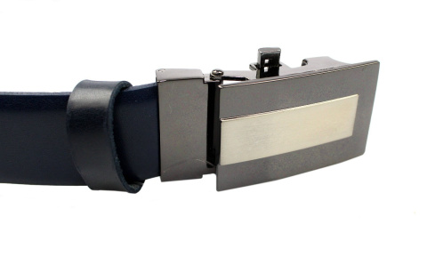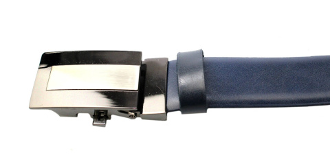 Pasek Skórzany COMPLEX (PL) Gładki Zaokrąglony Z Pełną Klamrą Automat Skóra Licowa 30 mm Granatowy Klamra ''CZARNA 1''