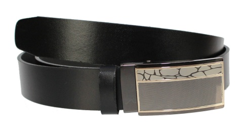 Pasek Skórzany Do Garnituru COMPLEX (PL) 35 mm AUTOMAT SAMOZACISK ŁAMANY KLAMRA "SREBRNA 23" Skóra Naturalna Licowa CZARNY