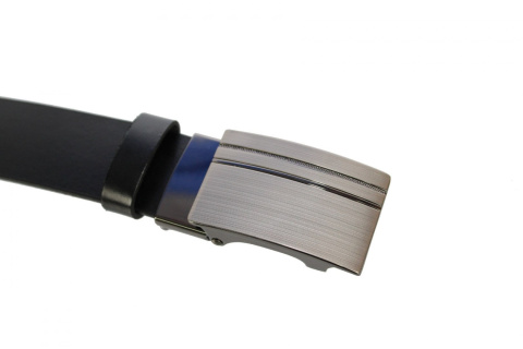 Pasek Skórzany Do Garnituru COMPLEX (PL) 35 mm AUTOMAT SAMOZACISK ŁAMANY KLAMRA "SREBRNA 27" Skóra Naturalna Licowa CZARNY