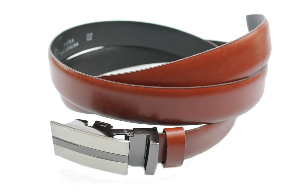 Pasek Skórzany Do Garnituru COMPLEX (PL) Zaokrąglony Z Pełną Klamrą Automat Skóra Licowa 30 mm BRĄZOWY Klamra "SREBRNA 23"