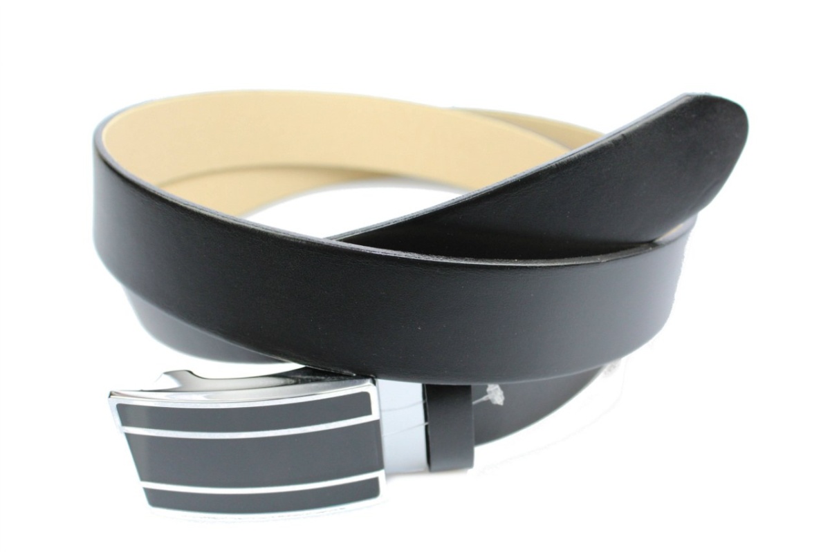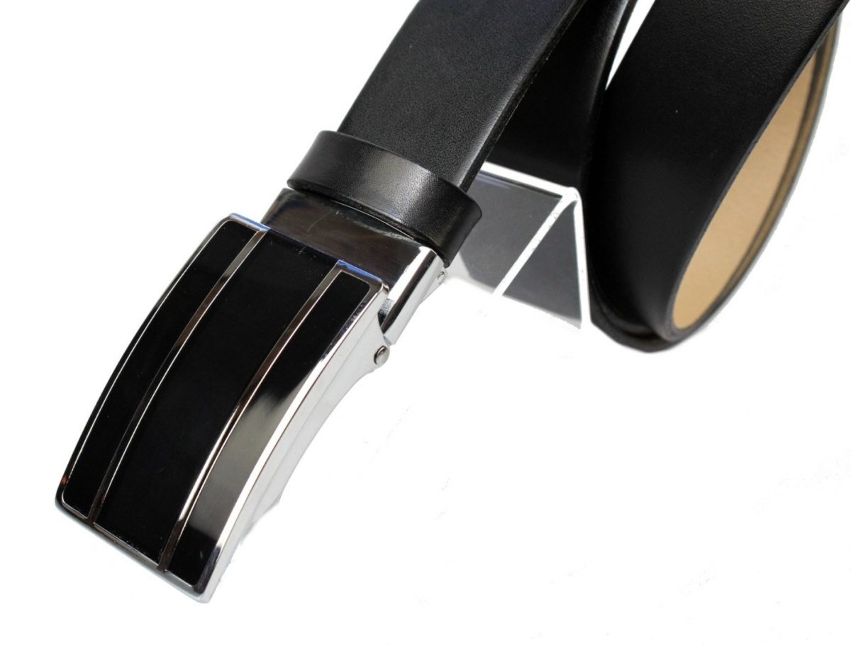 Pasek Skórzany Do Garnituru PAS-MAX (PL) 35 mm AUTOMAT SAMOZACISK ŁAMANY KLAMRA "CZARNA 6" Skóra Naturalna Licowa EXTRA CZARNY