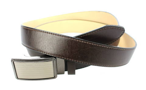 Pasek Skórzany Gładki ALBATROS (PL) 35 mm AUTOMAT SAMOZACISK ŁAMANY KLAMRA "SREBRNA 4" Skóra Naturalna Licowa EXTRA CZEKOLADOWY