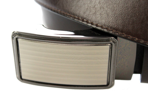 Pasek Skórzany Gładki ALBATROS (PL) 35 mm AUTOMAT SAMOZACISK ŁAMANY KLAMRA "SREBRNA IV" Skóra Naturalna Licowa EXTRA CZEKOLADOWY
