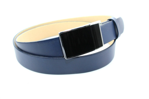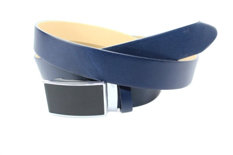 Pasek Skórzany Gładki PAS-MAX (PL) 35 mm AUTOMAT SAMOZACISK ŁAMANY KLAMRA "CZARNA 12" Skóra Naturalna Licowa EXTRA GRANATOWY