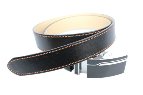Pasek Skórzany Gładki PAS-MAX (PL) 35 mm AUTOMAT SAMOZACISK ŁAMANY KLAMRA "CZARNA 19" Skóra Naturalna Licowa CZARNY Z POMARAŃCZOWĄ NITKĄ