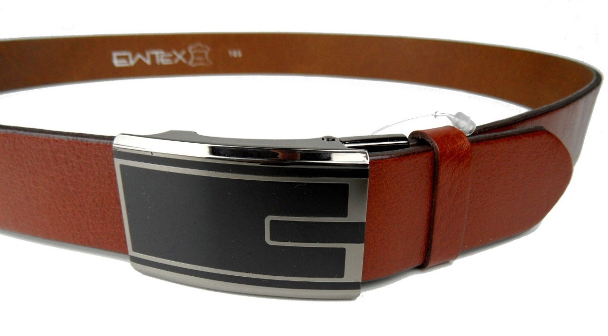 Pasek Skórzany Gładki PAS-MAX (PL) 35 mm AUTOMAT SAMOZACISK ŁAMANY KLAMRA "CZARNA 2" Skóra Naturalna Licowa EXTRA RUDY