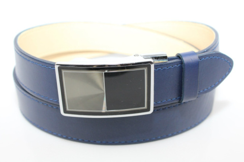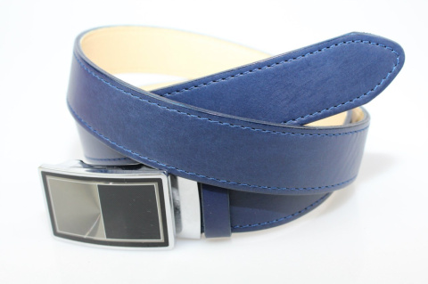 Pasek Skórzany Gładki PAS-MAX (PL) 35 mm AUTOMAT SAMOZACISK ŁAMANY KLAMRA "CZARNA 20" Skóra Naturalna Licowa EXTRA GRANATOWY