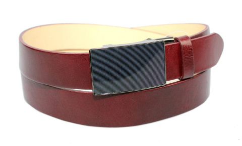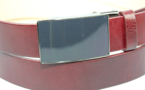 Pasek Skórzany Gładki PAS-MAX (PL) 35 mm AUTOMAT SAMOZACISK ŁAMANY KLAMRA "CZARNA 8" Skóra Naturalna Licowa EXTRA CZEREŚNIA.k61