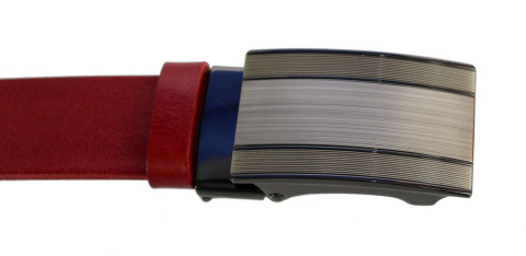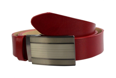 Pasek Skórzany Gładki PAS-MAX (PL) 35 mm AUTOMAT SAMOZACISK ŁAMANY KLAMRA "SR 5" Skóra Naturalna Licowa EXTRA CZERWONY K62