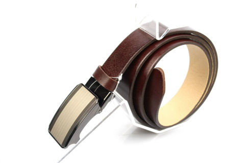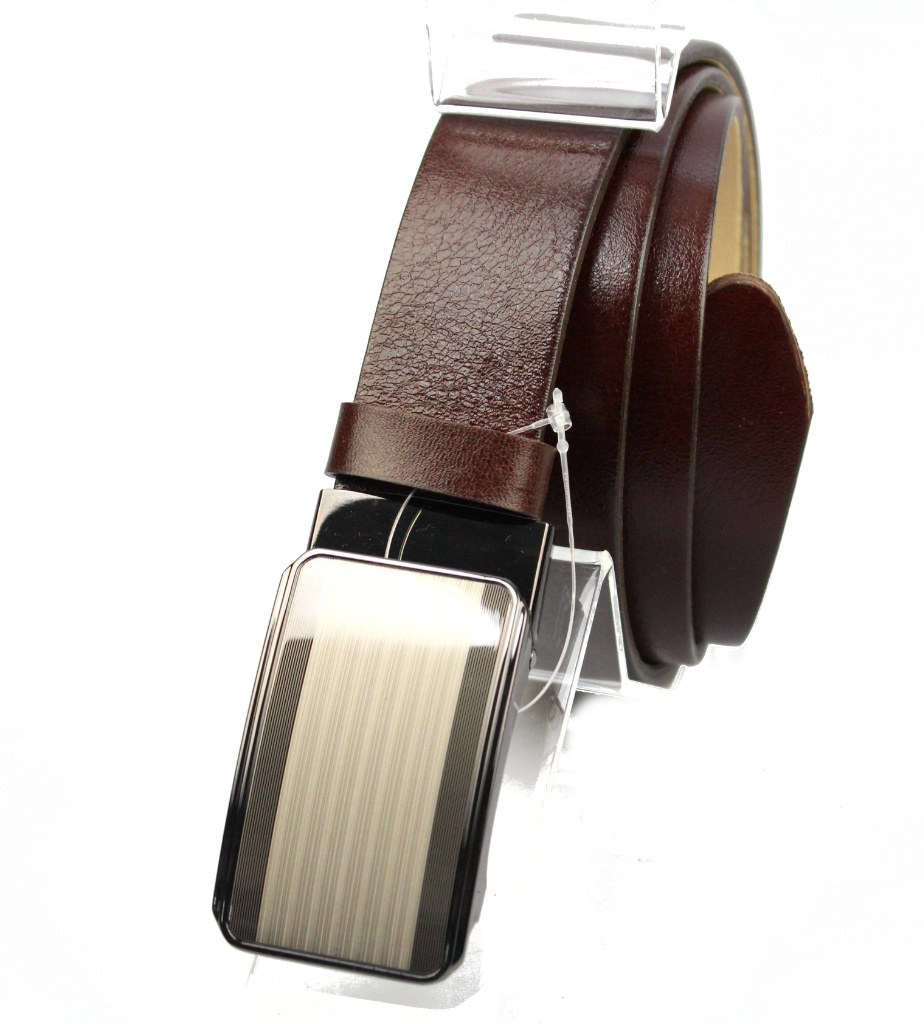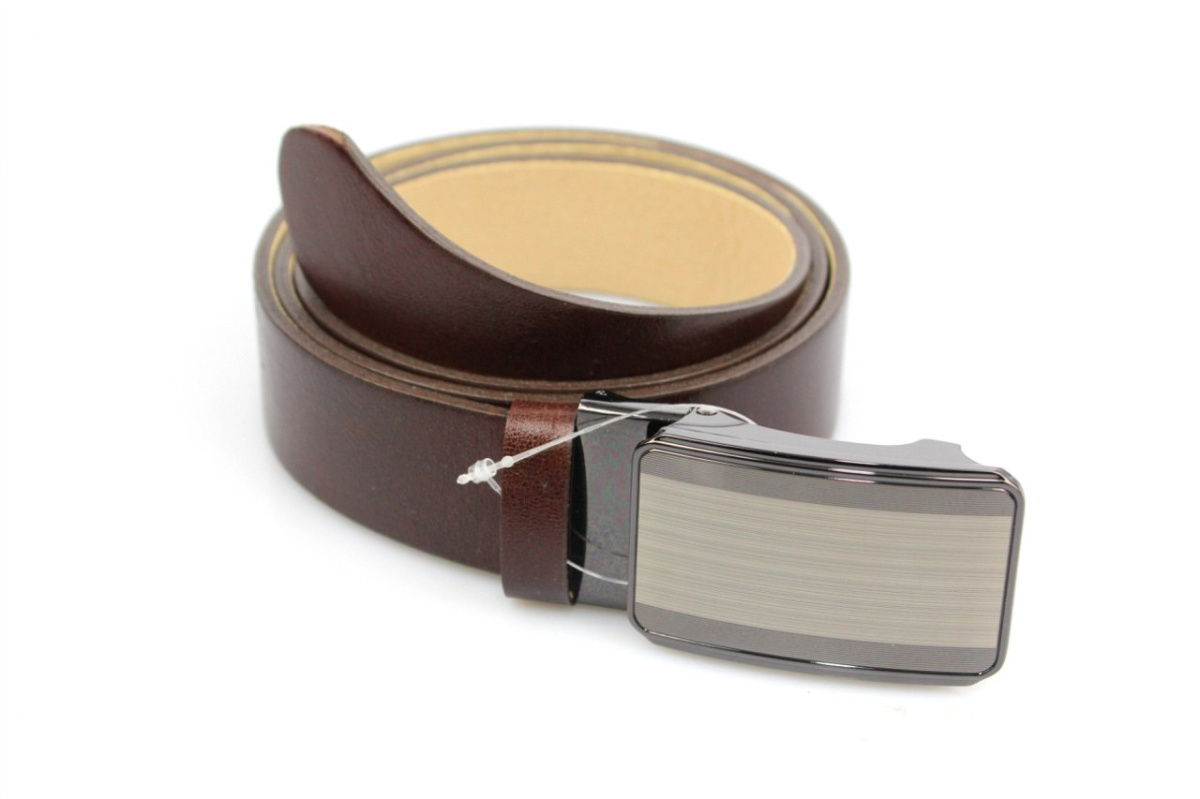 Pasek Skórzany Gładki PAS-MAX (PL) 35 mm AUTOMAT SAMOZACISK ŁAMANY KLAMRA "SREBRNA 1" Skóra Naturalna Licowa EXTRA CZEKOLADA.k41