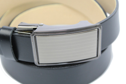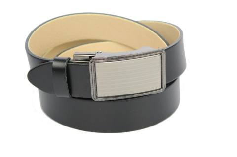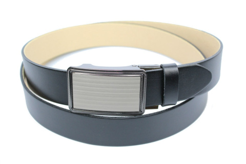 Pasek Skórzany Gładki PAS-MAX (PL) 35 mm AUTOMAT SAMOZACISK ŁAMANY KLAMRA "SREBRNA 4" Skóra Naturalna Licowa EXTRA CZARNY