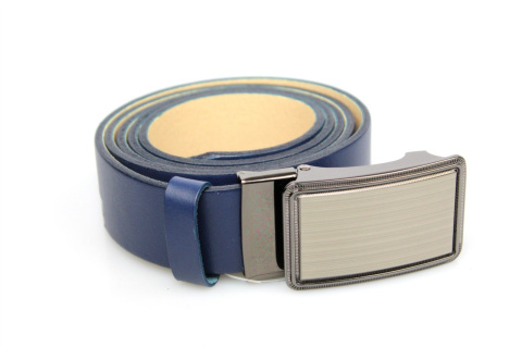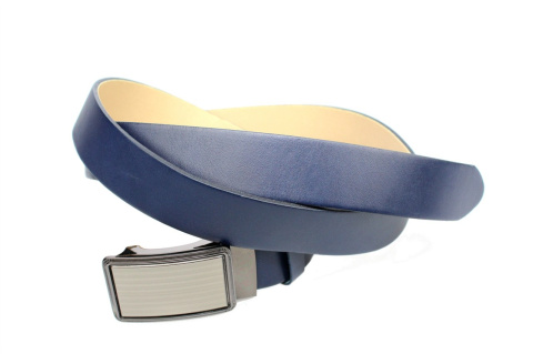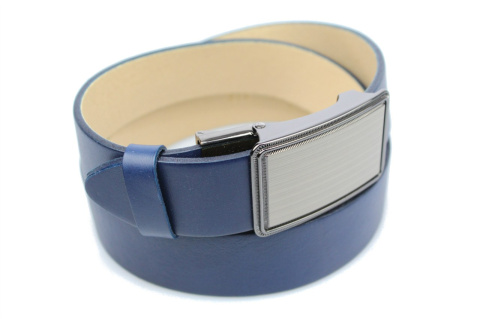 Pasek Skórzany Gładki PAS-MAX (PL) 35 mm AUTOMAT SAMOZACISK ŁAMANY KLAMRA "SREBRNA 4" Skóra Naturalna Licowa EXTRA GRANATOWY