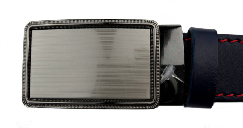 Pasek Skórzany Gładki PAS-MAX (PL) 35 mm AUTOMAT SAMOZACISK ŁAMANY KLAMRA "SREBRNA 4" Skóra Naturalna Licowa EXTRA NIEBIESKI