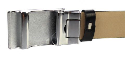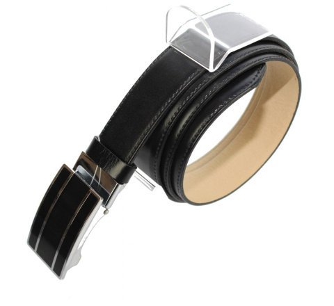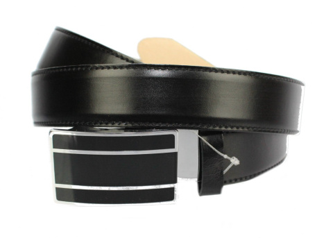 Pasek Skórzany PAS-MAX (PL) 35 mm AUTOMAT SAMOZACISK ŁAMANY KLAMRA "CZARNA 6" Skóra Naturalna Licowa CZARNY Z SZYCIEM