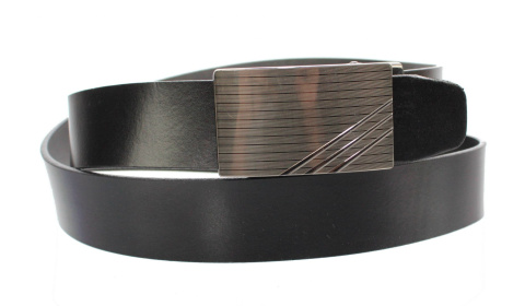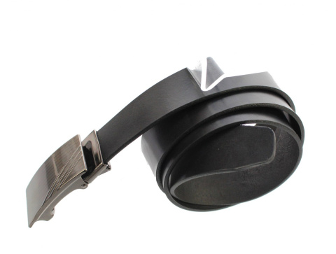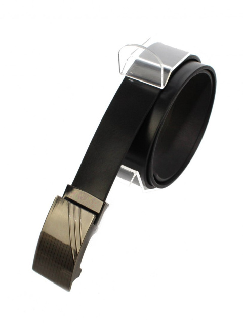 Pasek Skórzany PAS-MAX (PL) 35 mm AUTOMAT SAMOZACISK ŁAMANY KLAMRA "SREBRNA 22" Skóra Naturalna Licowa CZARNY