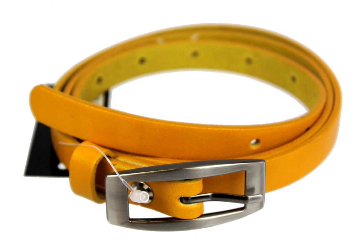 Pasek Skórzany PAS-MAX (PL) Damski Skóra Licowa 15 mm JASNY POMARAŃCZOWY Wąski Duża Klamra