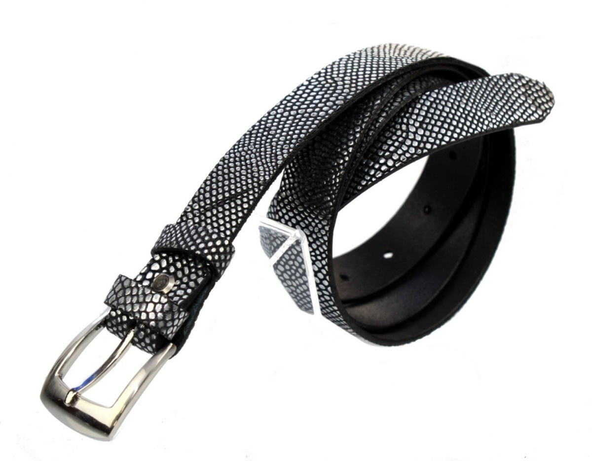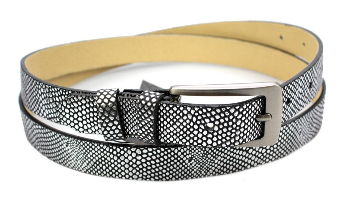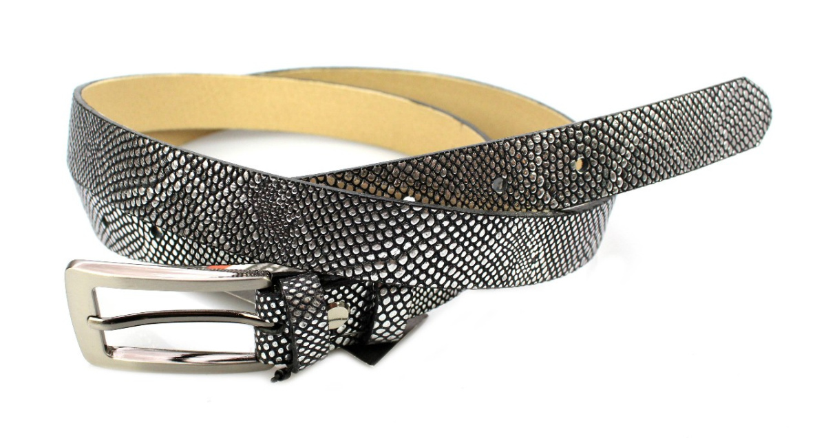 Pasek Skórzany PAS-MAX (PL) Damski "WĘŻOWA SKÓRA" Skóra Licowa EXTRA 25 mm SREBRNY