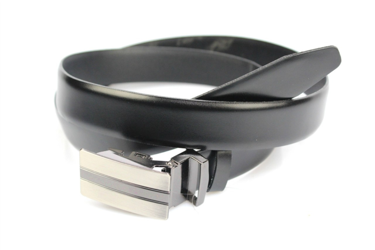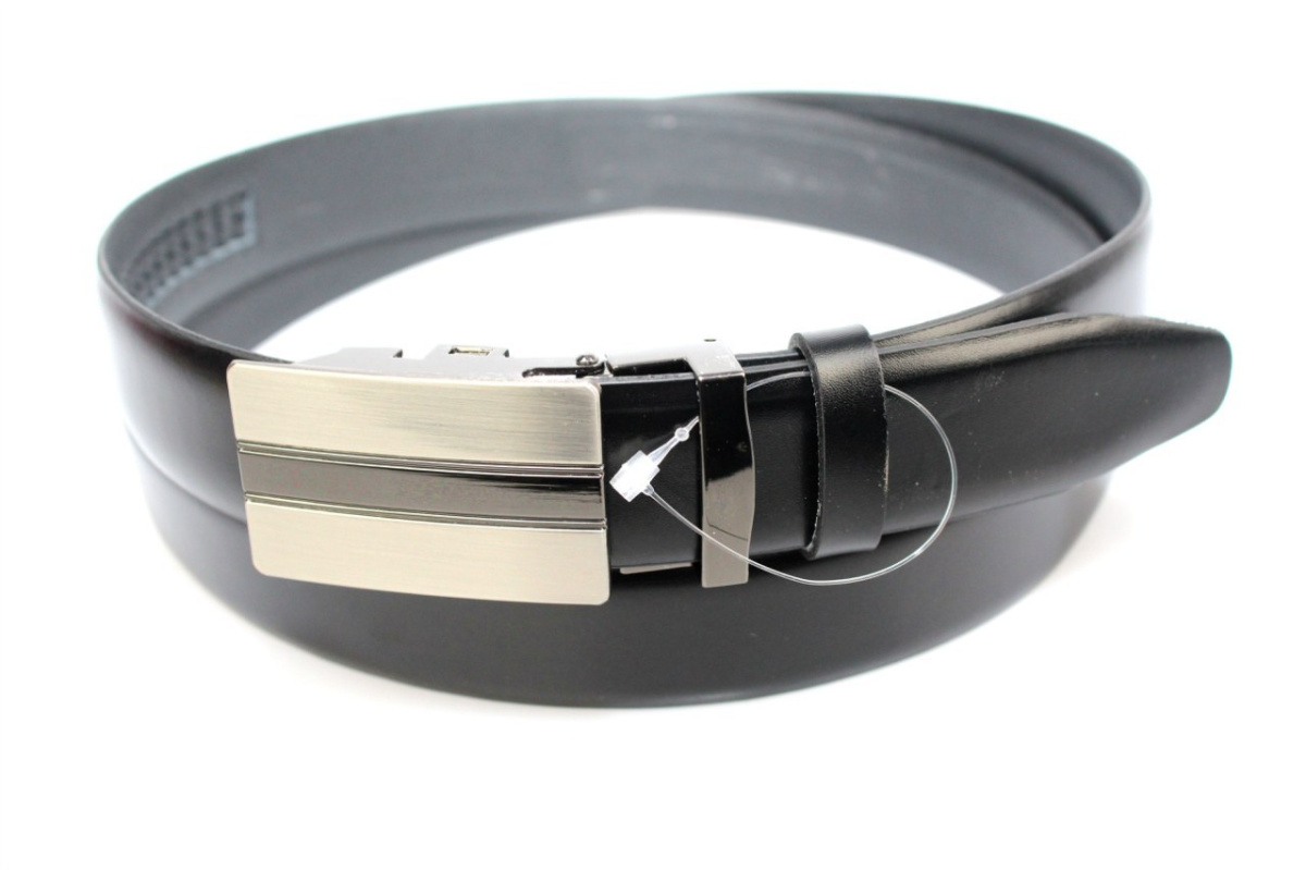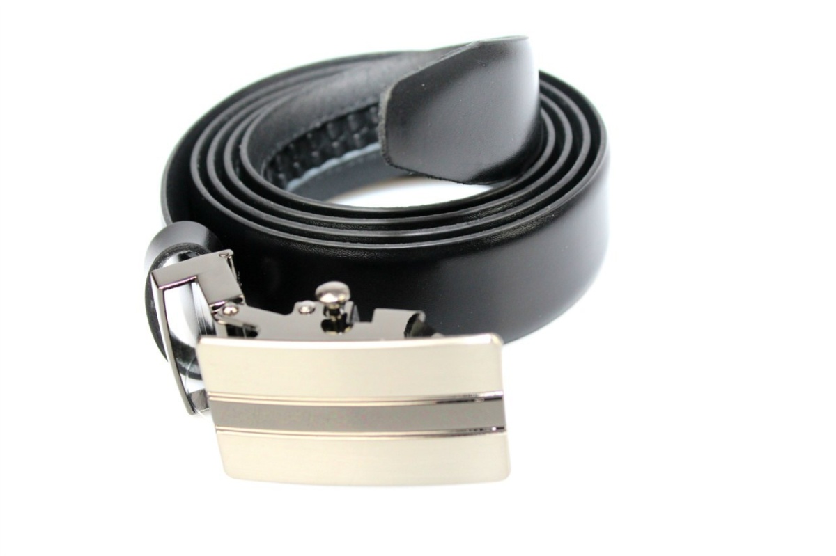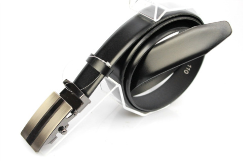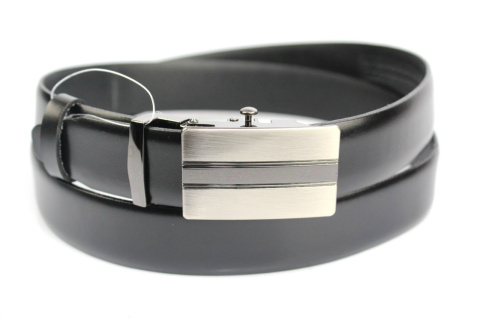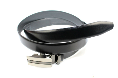 Pasek Skórzany PAS-MAX (PL) Gładki Zaokrąglony Z Pełną Klamrą Automat Skóra Licowa 30 mm CZARNY Klamra "SREBRNA 2"