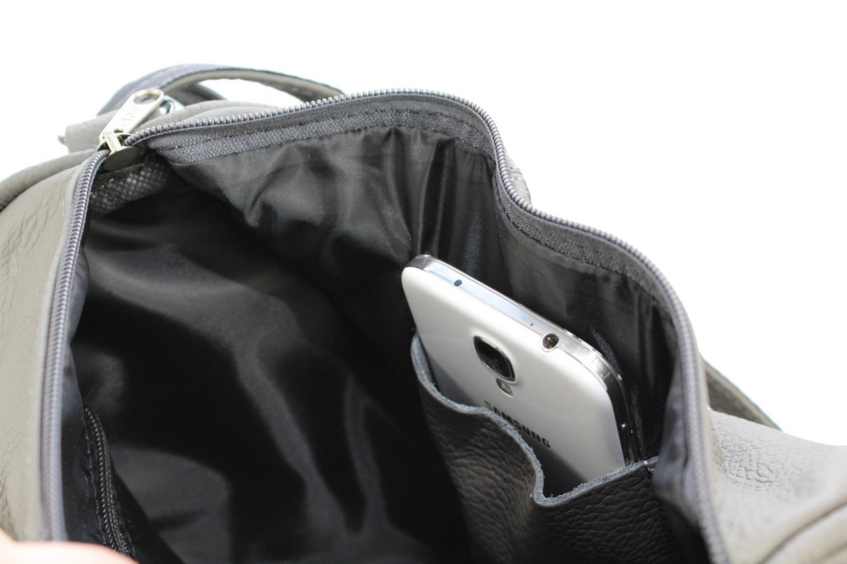 - wewnątrz znajduje się praktyczna kieszonka na telefon komórkowy oraz niewielka kieszonka z zamkiem na dokumenty,